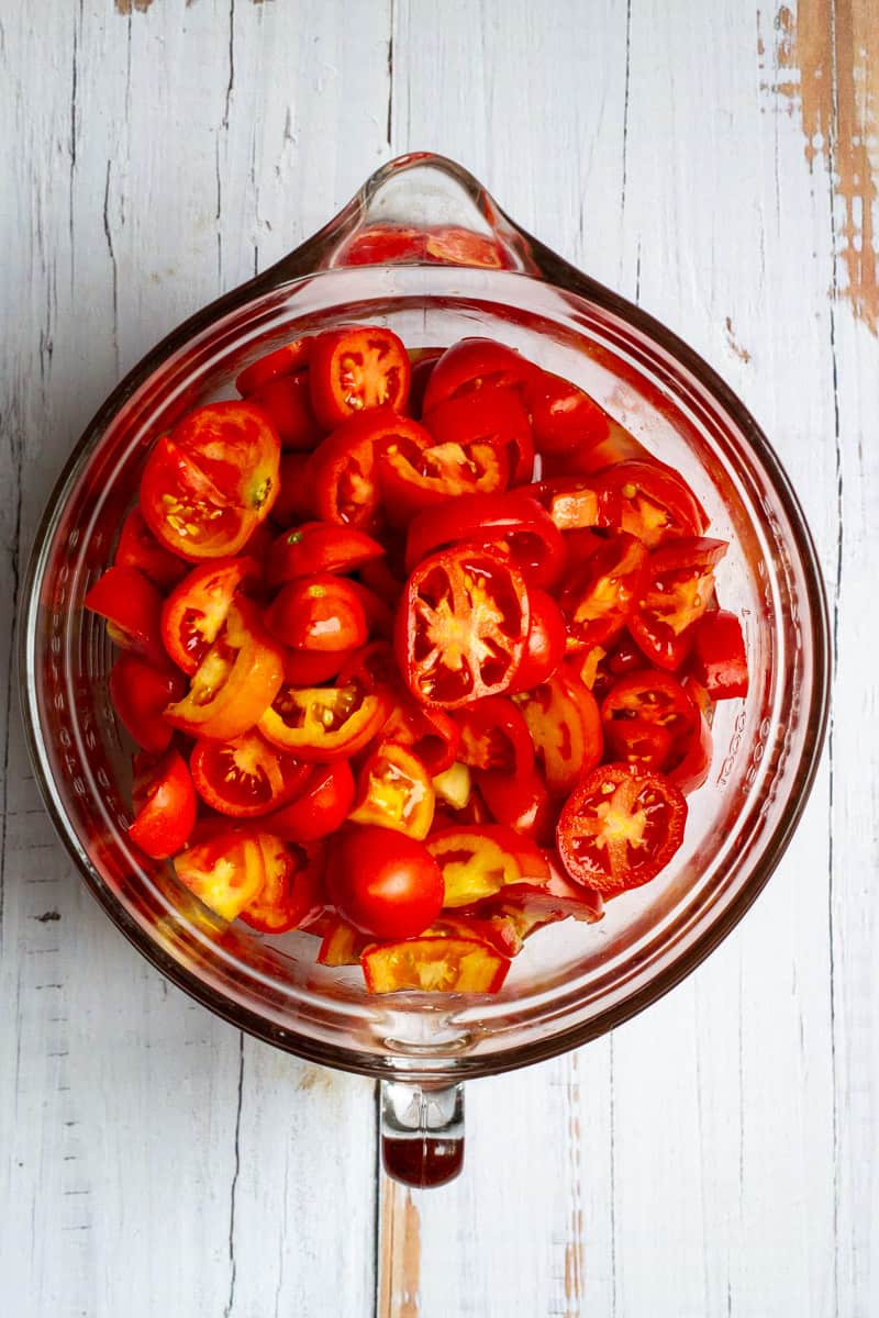 Next add the canned tomatoes sun dried tomatoes tomato paste balsamic vinegar bay leaves oregano salt and black pepper. Using a slotted spoon transfer the tomatoes to the ice bath. Working in batches blanch the tomatoes for 15 to 30 seconds or until their skin becomes loose.